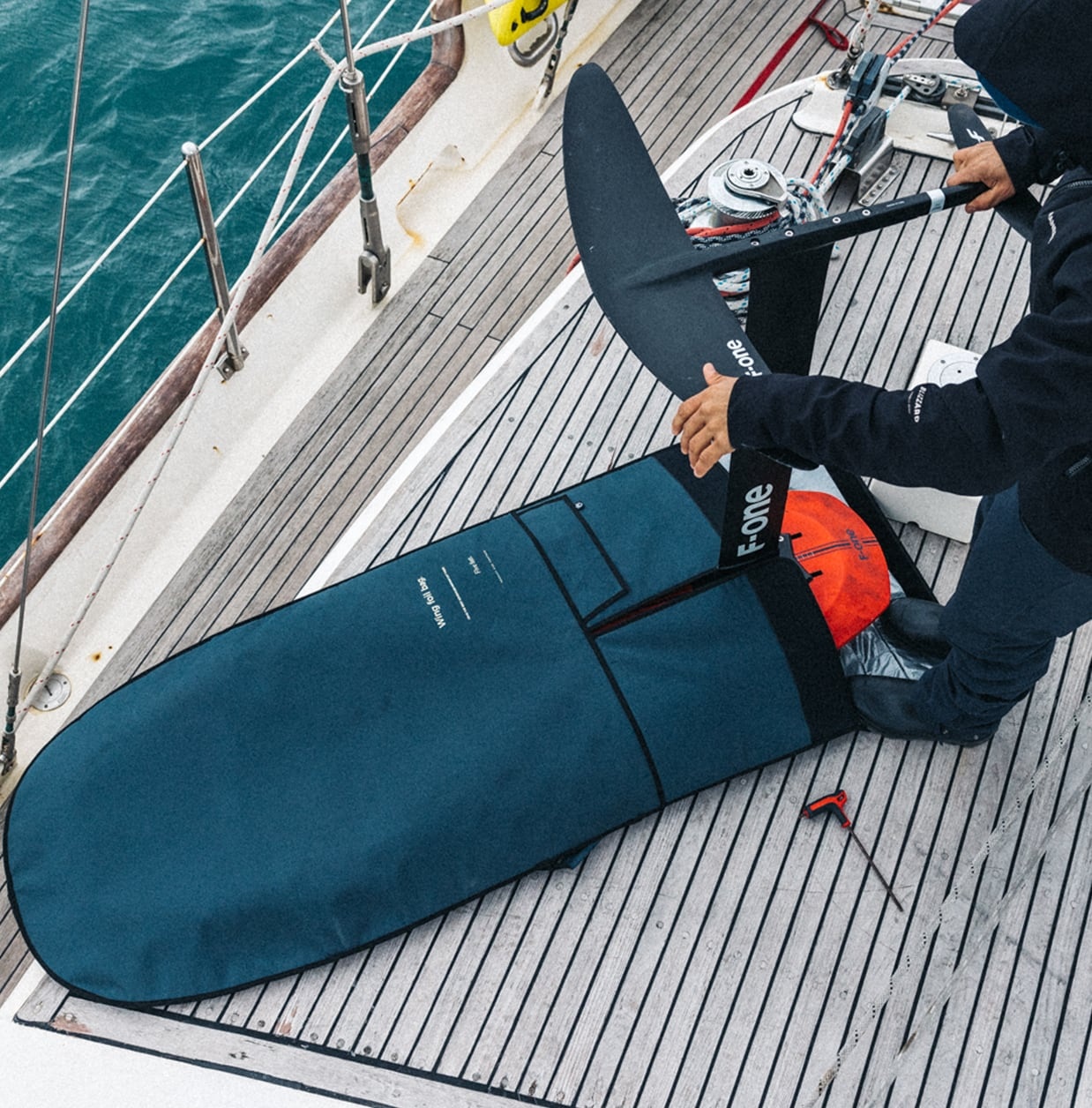 Accesso al piantone: questo design specifico su tutte le borse per foil di Manera ti consente di mettere la tua tavola nella borsa con il mast ancora montato.