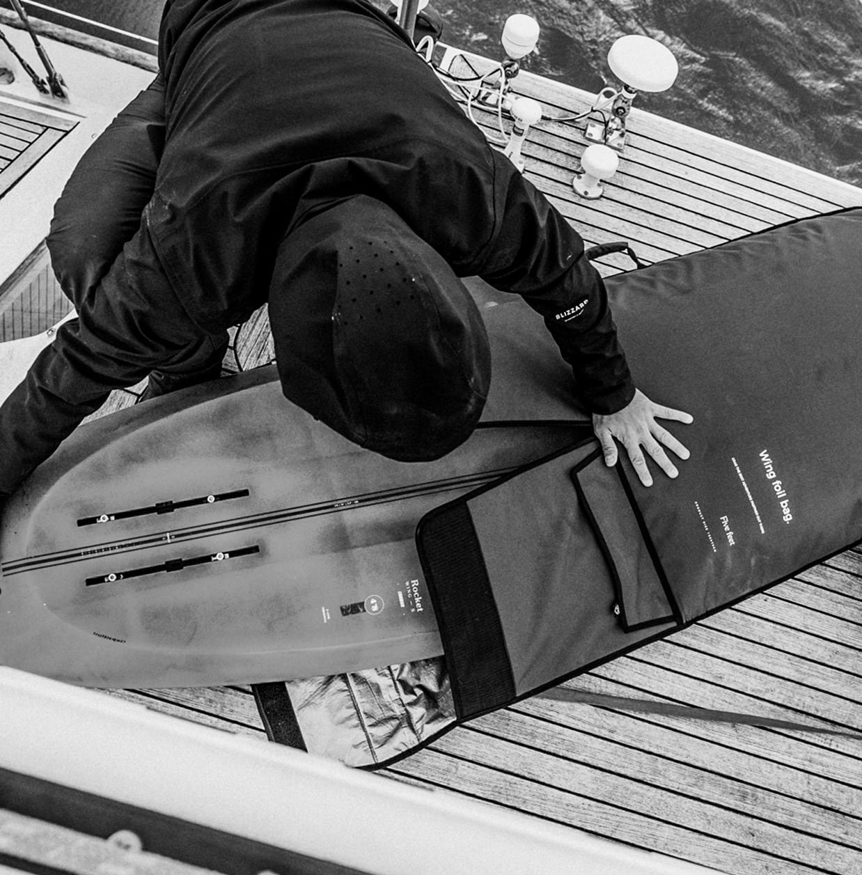 Accesso al piantone: questo design specifico su tutte le borse per foil di Manera ti consente di mettere la tua tavola nella borsa con il mast ancora montato.